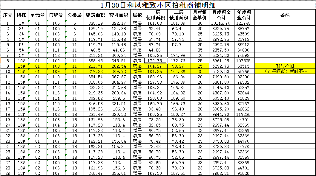 即日起展示。有意承租者請攜帶有效證件至我公司辦理報名登記手續(xù),并繳納每間1萬元競拍保證金即可參加拍賣會(每位競買人最多報名競拍5間);報名時間截止至1月29日16時。