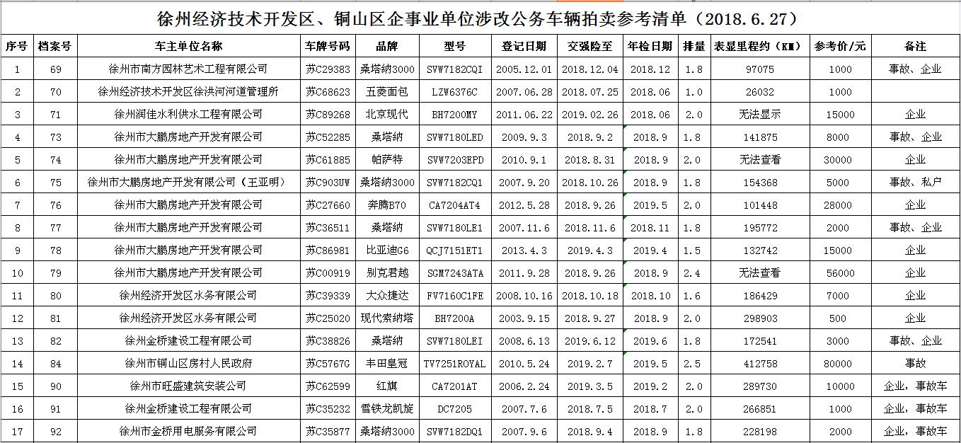 一、拍賣標(biāo)的:區(qū)級企事業(yè)單位涉改公車數(shù)十輛。