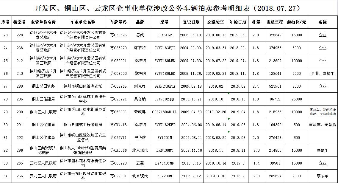 關(guān)注微信公眾號受委托,五家拍賣公司聯(lián)合舉行“徐州市企事業(yè)單位改革公務(wù)車輛聯(lián)合拍賣會”。拍賣時(shí)間:2018年7月27日上午9:30。