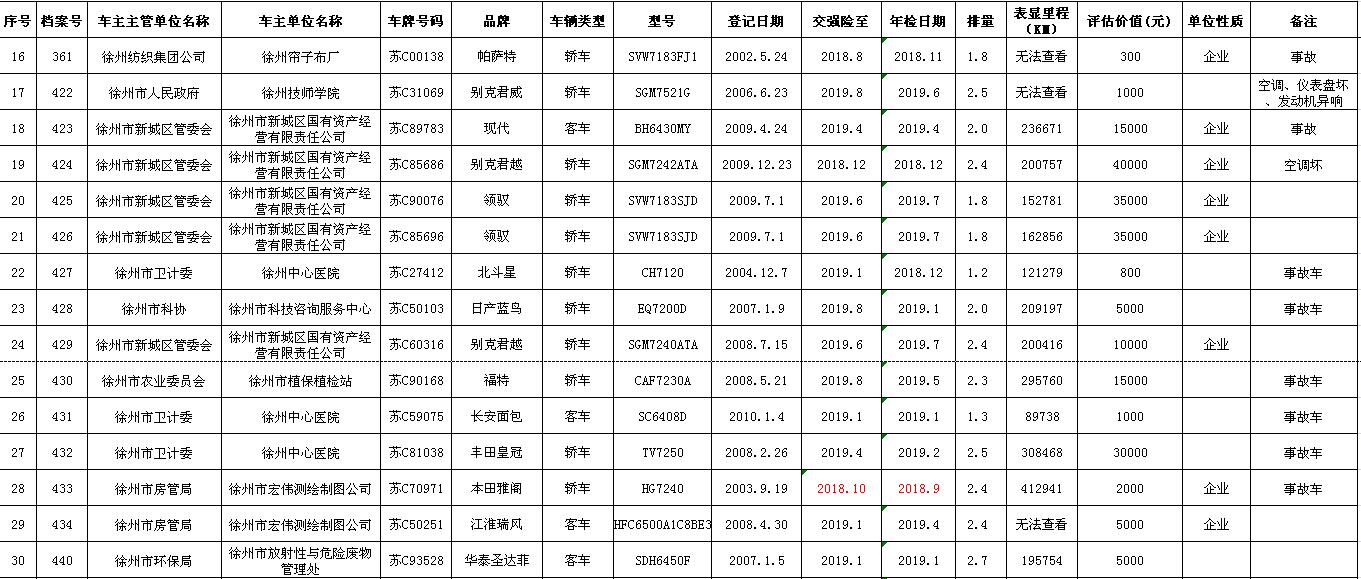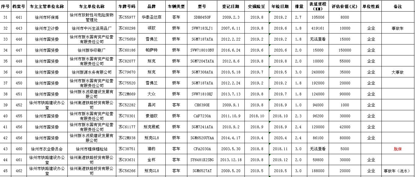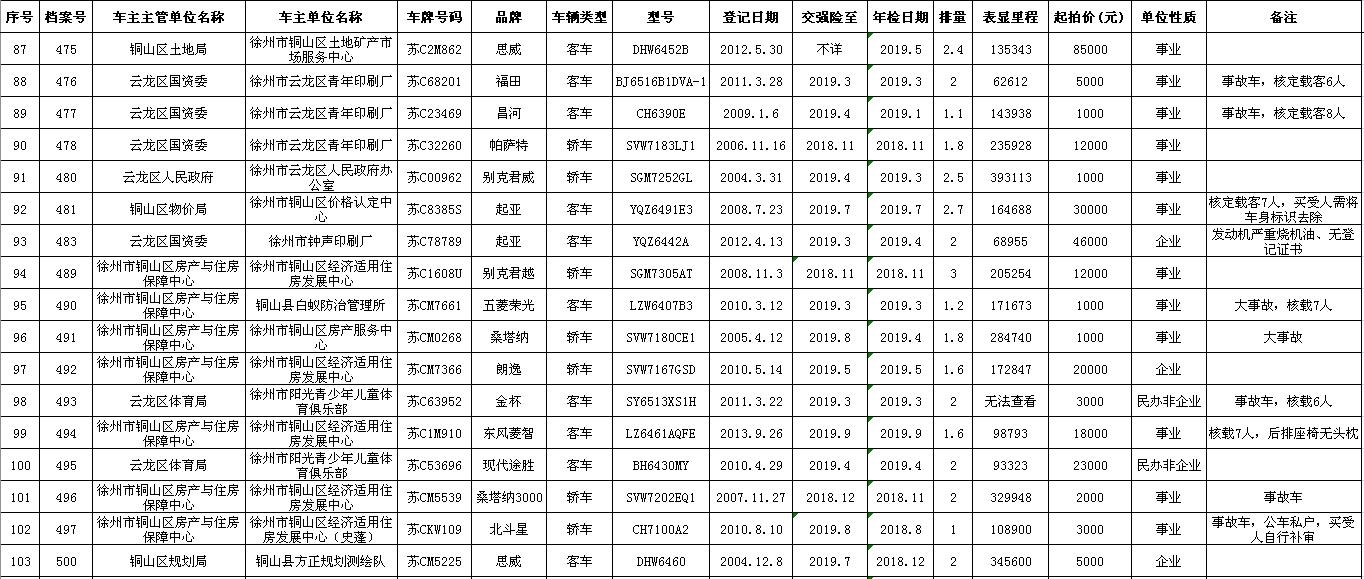 一、拍賣標的:徐州市市級及區(qū)級企事業(yè)單位改革公務(wù)車輛共約114輛(詳見拍品目錄)。