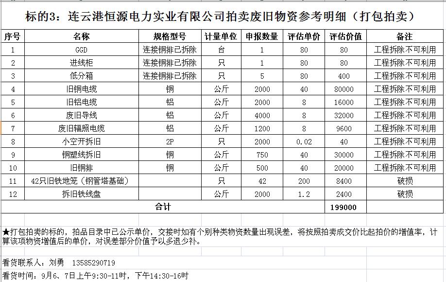 關(guān)注微信公眾號(hào)受連云港齊天實(shí)業(yè)有限公司委托,我公司將通過中國(guó)拍賣行業(yè)協(xié)會(huì)網(wǎng)絡(luò)拍賣平臺(tái)以網(wǎng)絡(luò)競(jìng)價(jià)的方式公開拍賣以下單位廢舊物資: