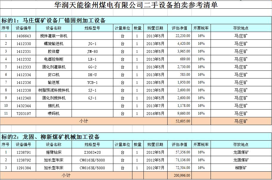 關(guān)注微信公眾號我公司受委托,定于2018年9月18日10時(shí)在徐州市中山南路55號副樓三樓本公司拍賣大廳公開拍賣:徐州市馬莊煤礦、大劉煤礦、龍固煤礦、沛城煤礦、柳新煤礦的二手設(shè)備一批。