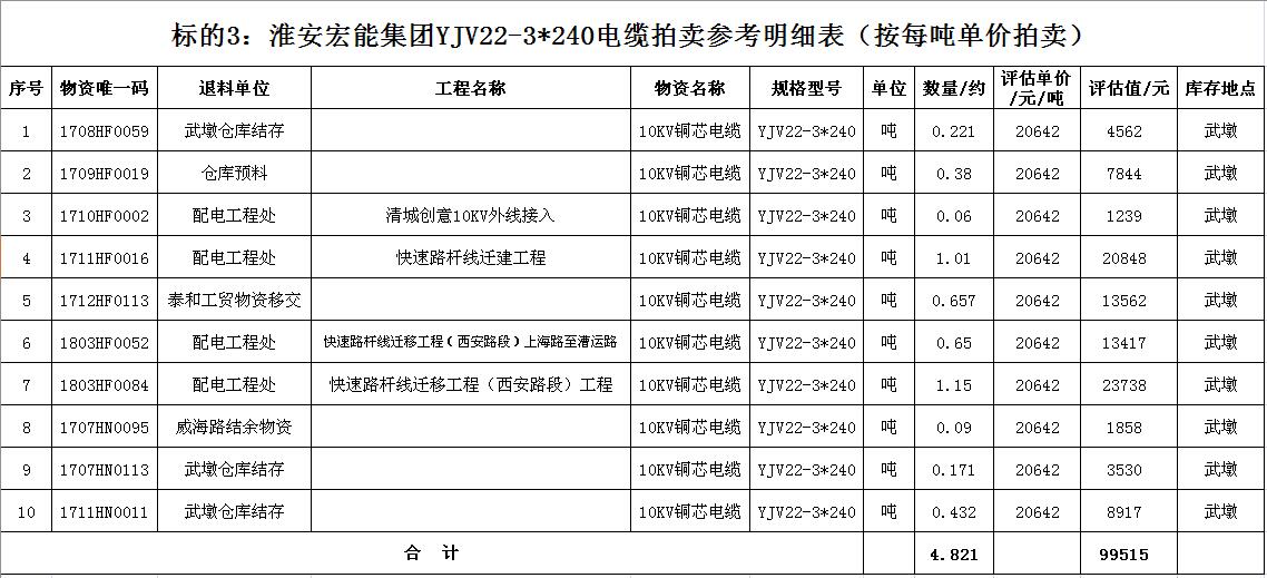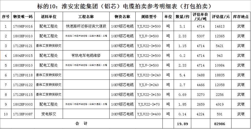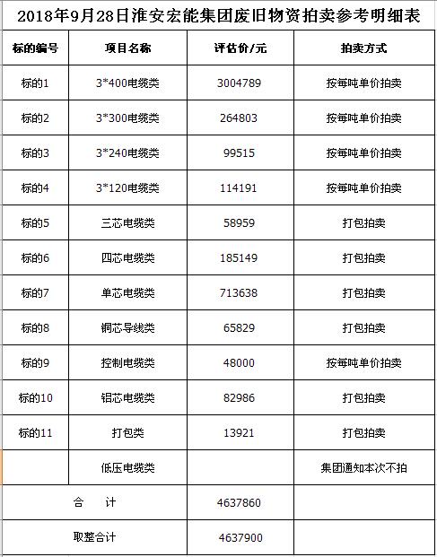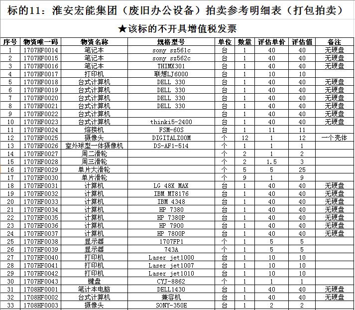關(guān)注微信公眾號(hào)受淮安宏能集團(tuán)有限公司委托,我公司將通過中國(guó)拍賣行業(yè)協(xié)會(huì)網(wǎng)絡(luò)拍賣平臺(tái)以網(wǎng)絡(luò)競(jìng)價(jià)的方式公開拍賣廢舊物資一批,主要包括:各型電纜,計(jì)算機(jī)、打印機(jī)等辦公用品(詳見拍品目錄)。