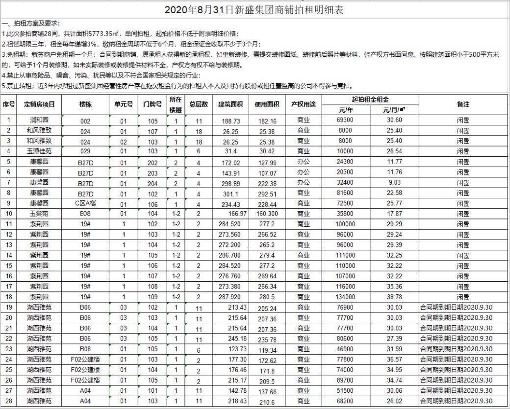 即日起展示。有意者請攜帶有效證件至我公司辦理報名手續(xù),并交納每間商鋪2萬元競拍保證金即可參加拍賣會,報名截止至8月28日16時。