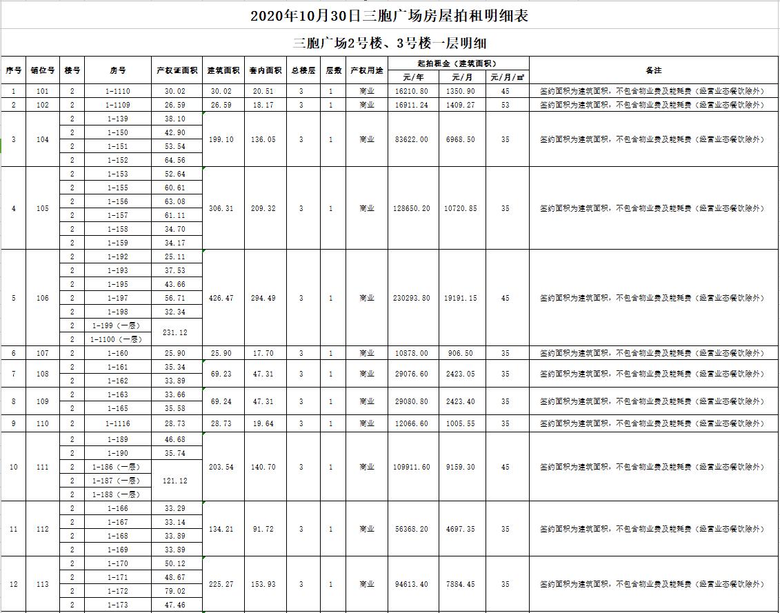 關(guān)注微信公眾號我公司受委托,定于2020年10月30日10時在徐州中山南路55號本公司三樓拍賣廳公開拍租:三胞廣場2號樓、3號樓1層、3層等部分商鋪及辦公房,面積分別約為數(shù)十至數(shù)百平米,租期3-5年。禁止從事危險品、有污染及擾民的行業(yè)經(jīng)營。