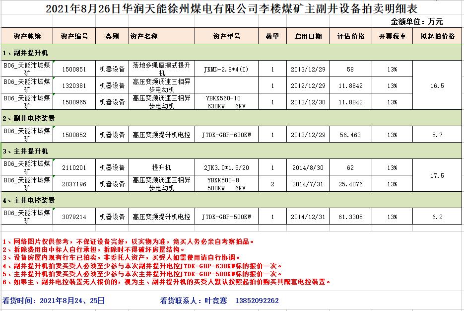 2、華潤天能公司李樓煤礦主副井提升機(jī)及電控裝置。(保證金5萬元)
