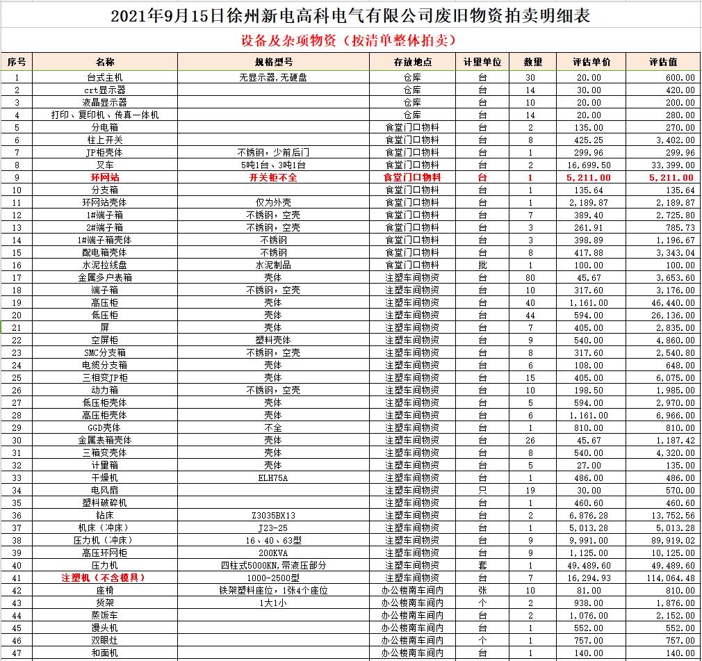 9月14、15日在徐州新電高科電氣有限公司集中展示。符合條件者請持上述資質(zhì)原件及公章等到本公司辦理報(bào)名,并交納10萬元保證金即可參拍,報(bào)名截止至9月13日16時(shí)。